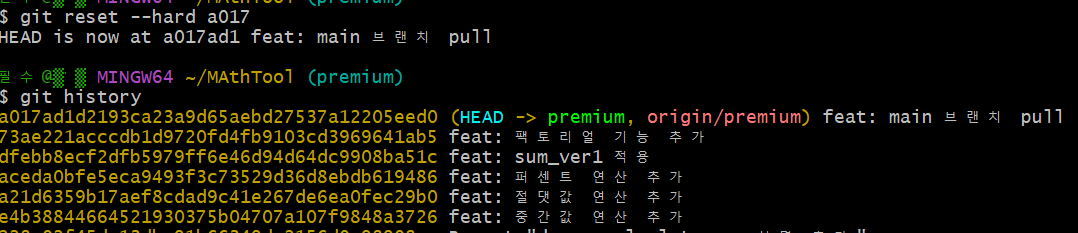 기능을 수정하였으므로 2번 커밋은 필요없는 커밋이 되었다.