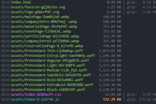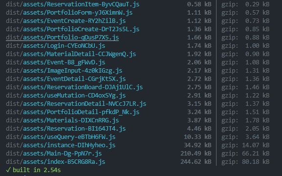 또한 빌드 시간 역시 줄어들었는데, 청크 파일로 분리하는 과정에서 불필요한 코드나 중복이 제거된 것이 요인인 것 같다.