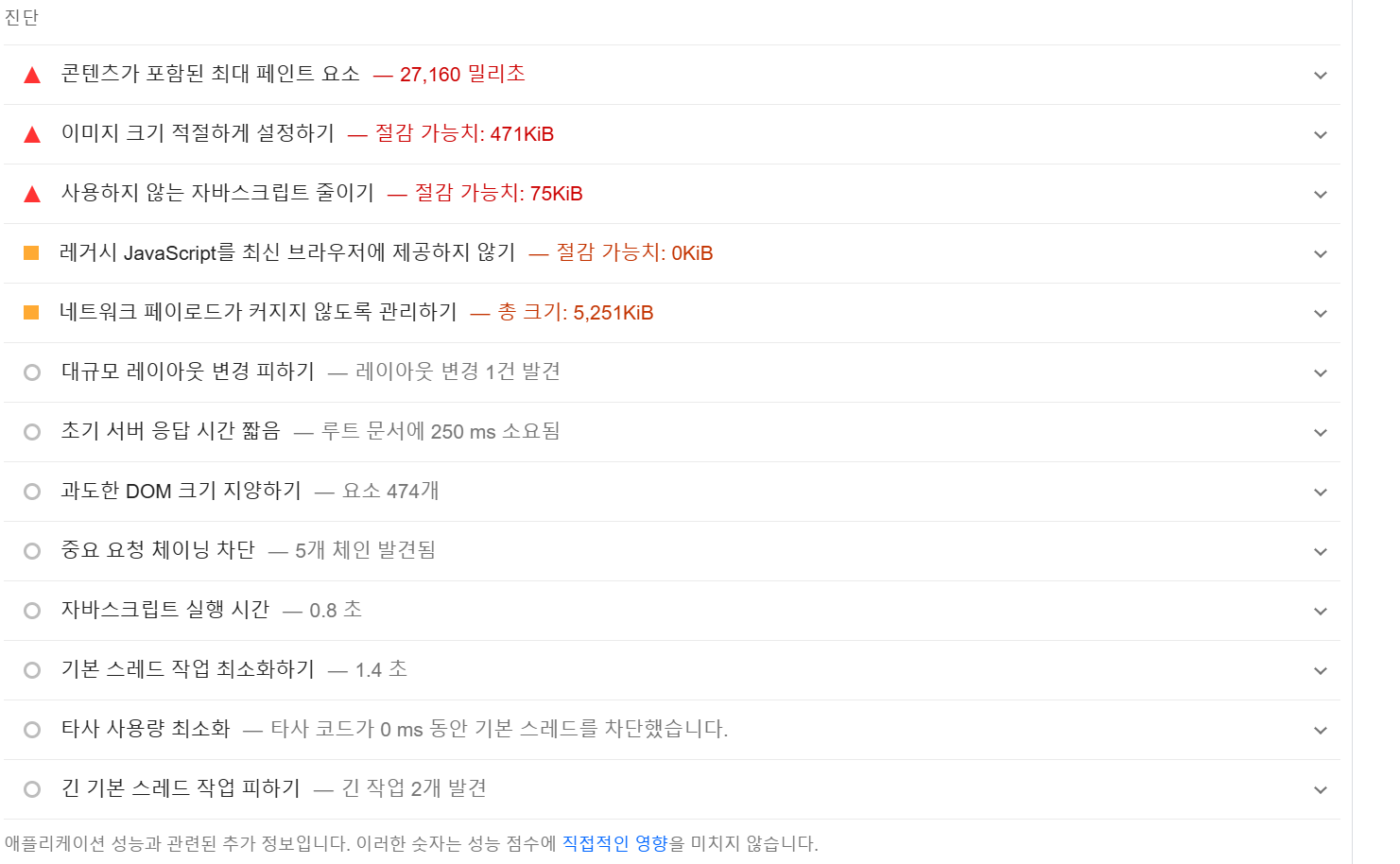 CSR을 기반으로 하여 첫 로딩이 느린 것에 더하여 고해상도 이미지 때문에 부하가 더 심한 것 같다는 생각이 들었다.